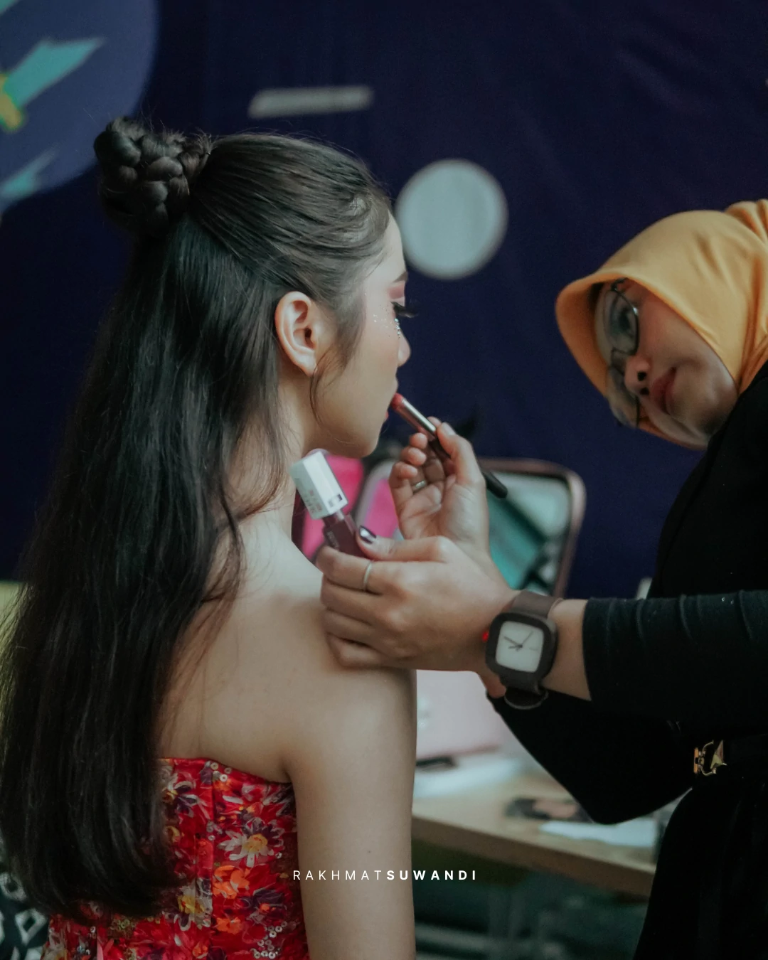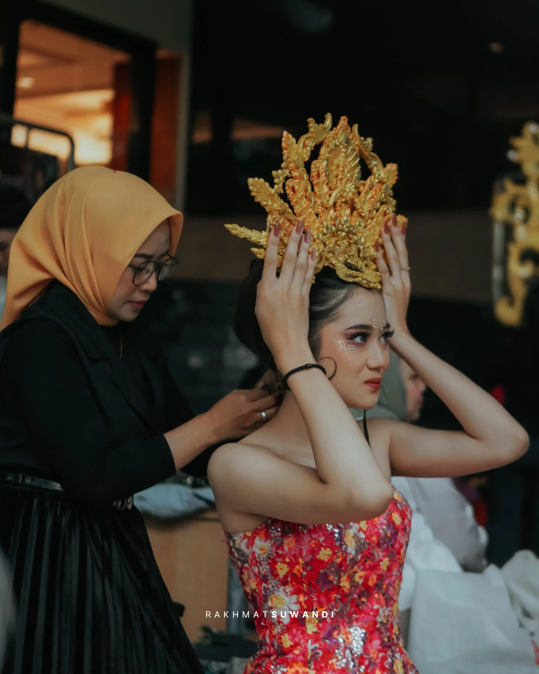 Tujuannya bukan sekadar mendokumentasikan hasil akhir, tetapi juga menampilkan perjalanan di balik layar — momen ketika seorang model bertransformasi menjadi sosok yang memancarkan kepercayaan diri dan keindahan. Setiap bidikan diarahkan untuk menonjolkan detail riasan, tekstur kostum, dan ekspresi lembut yang menggambarkan keanggunan dalam seni pertunjukan.