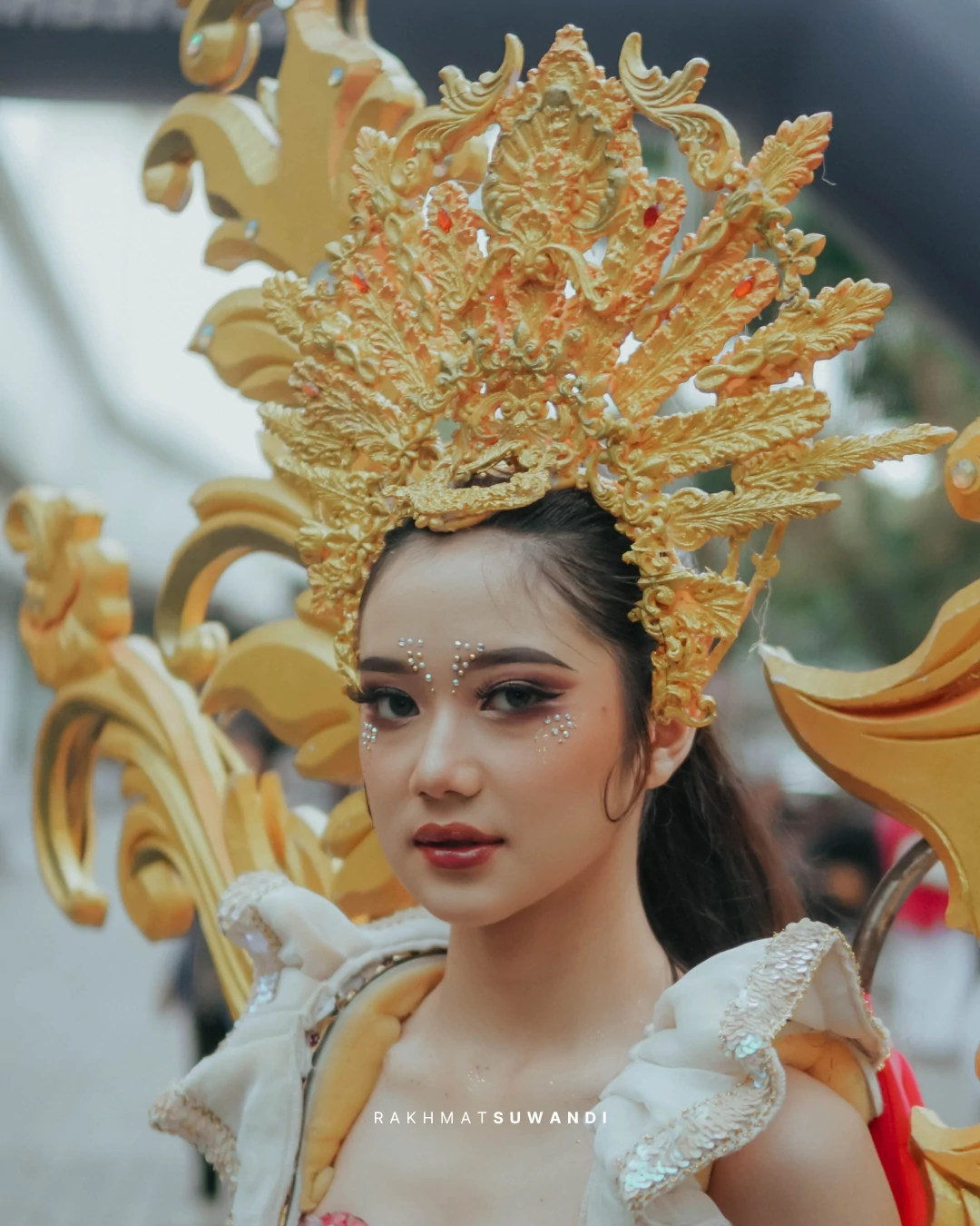 Pemotretan menggunakan Sony A6500 + Sigma 30mm f/1.4 dengan kombinasi cahaya alami dan continuous light lembut untuk menjaga detail riasan tetap jelas. White balance disesuaikan agar warna kostum dan kulit tampak natural. Proses editing difokuskan pada color balance dan highlight recovery untuk mempertahankan kilau dan tekstur tanpa kehilangan keaslian tone.