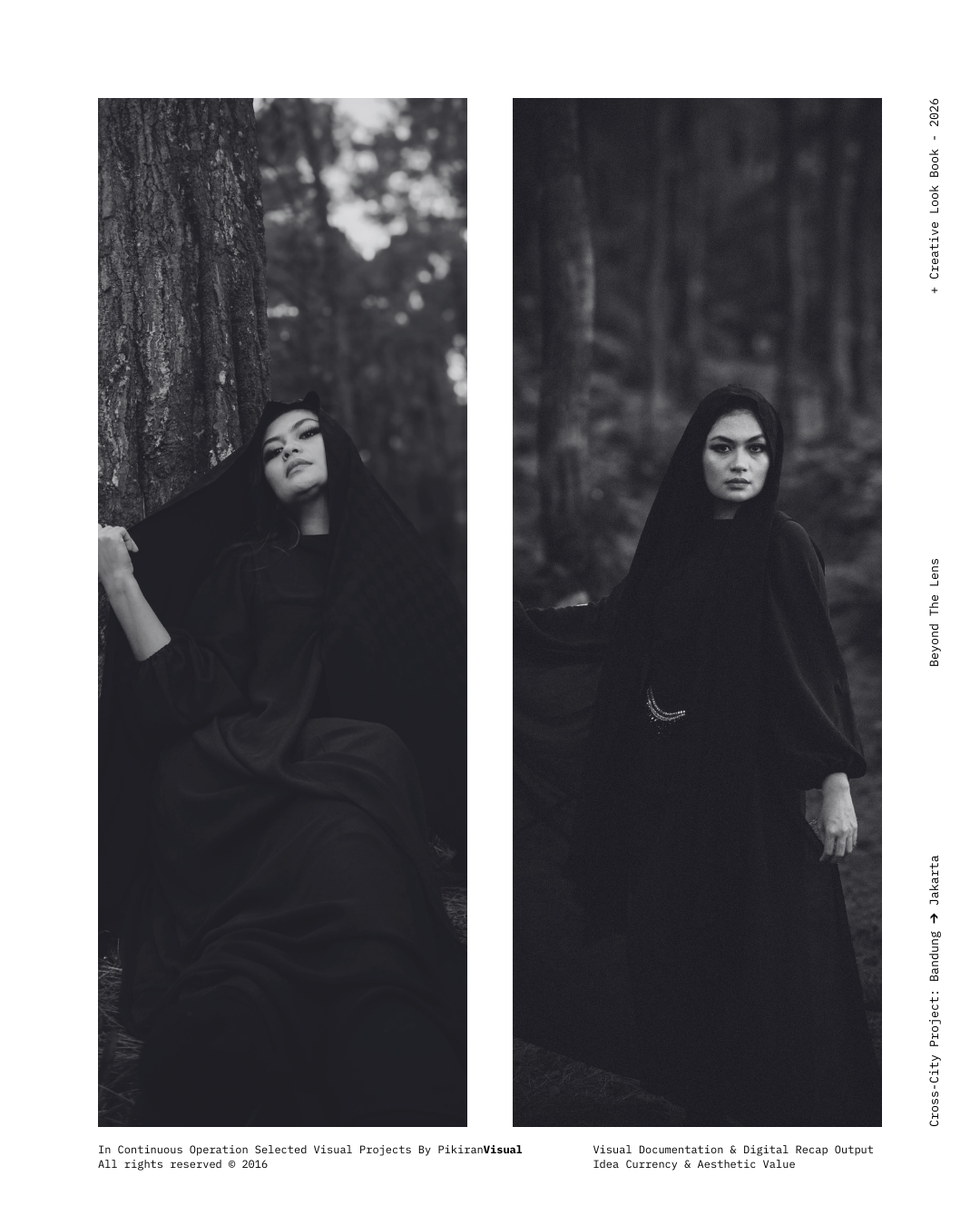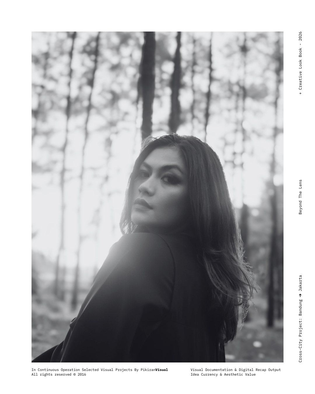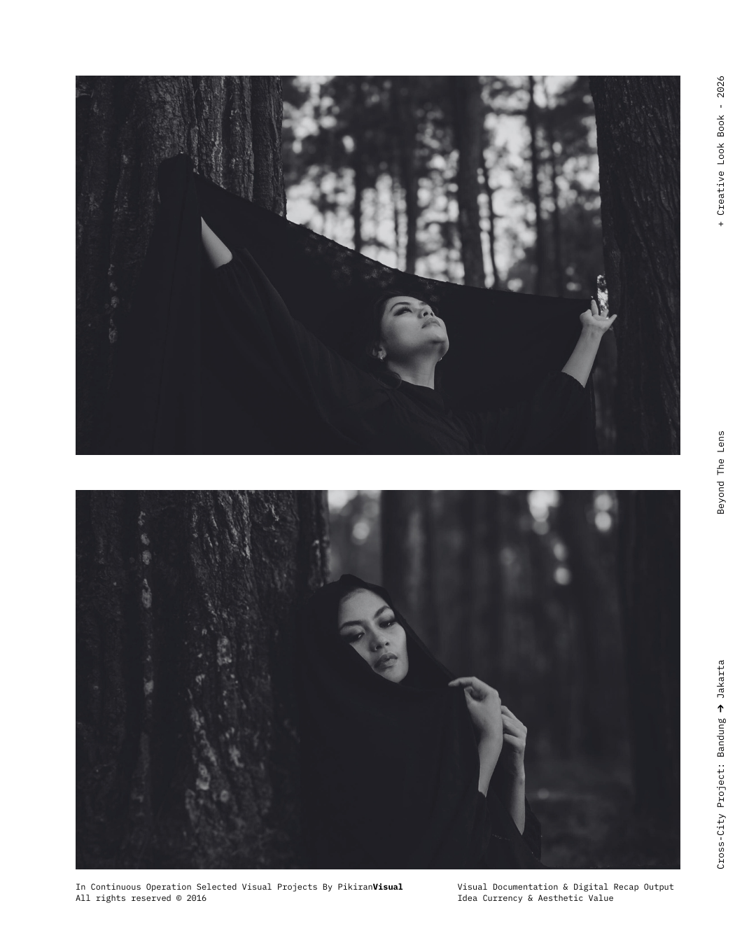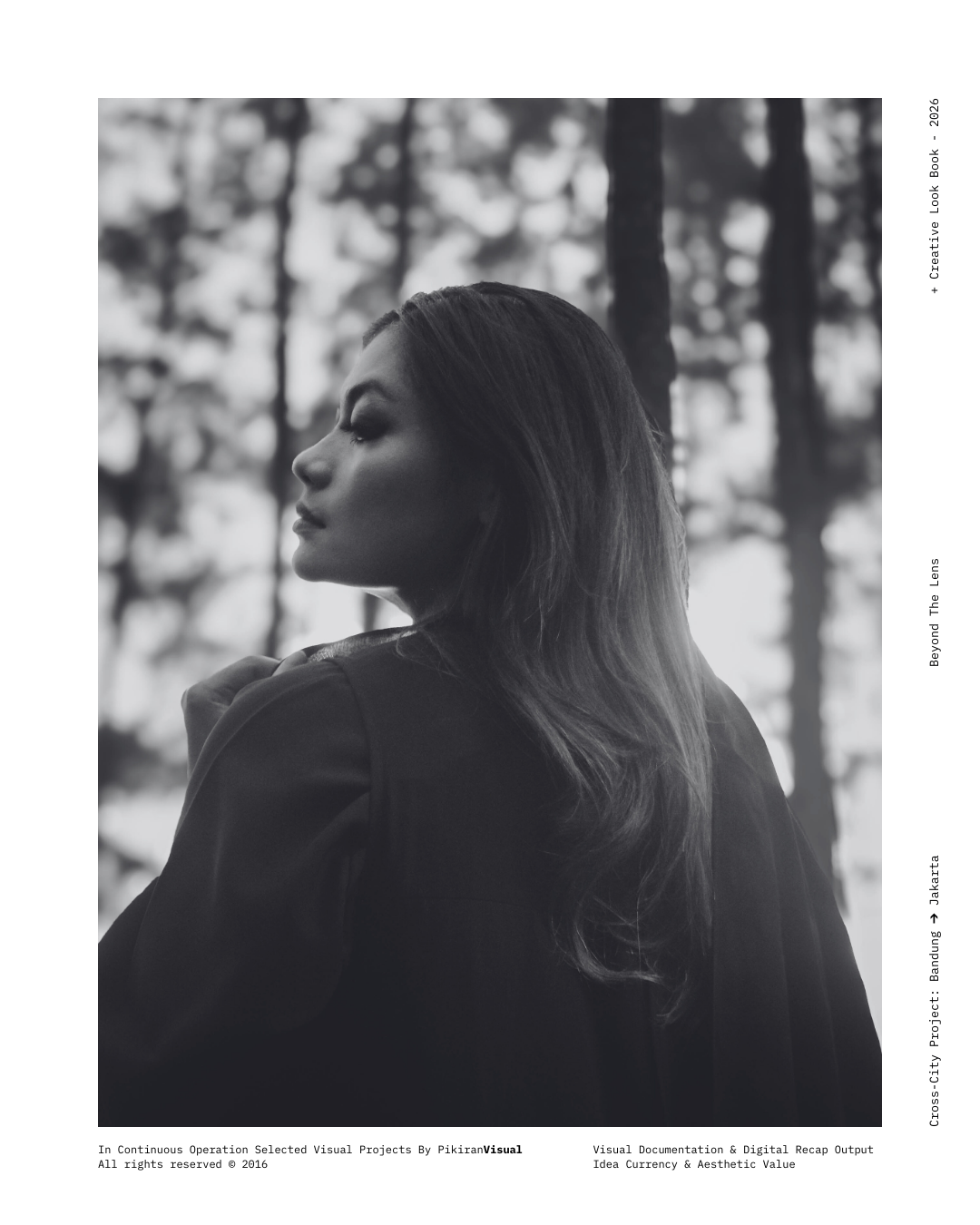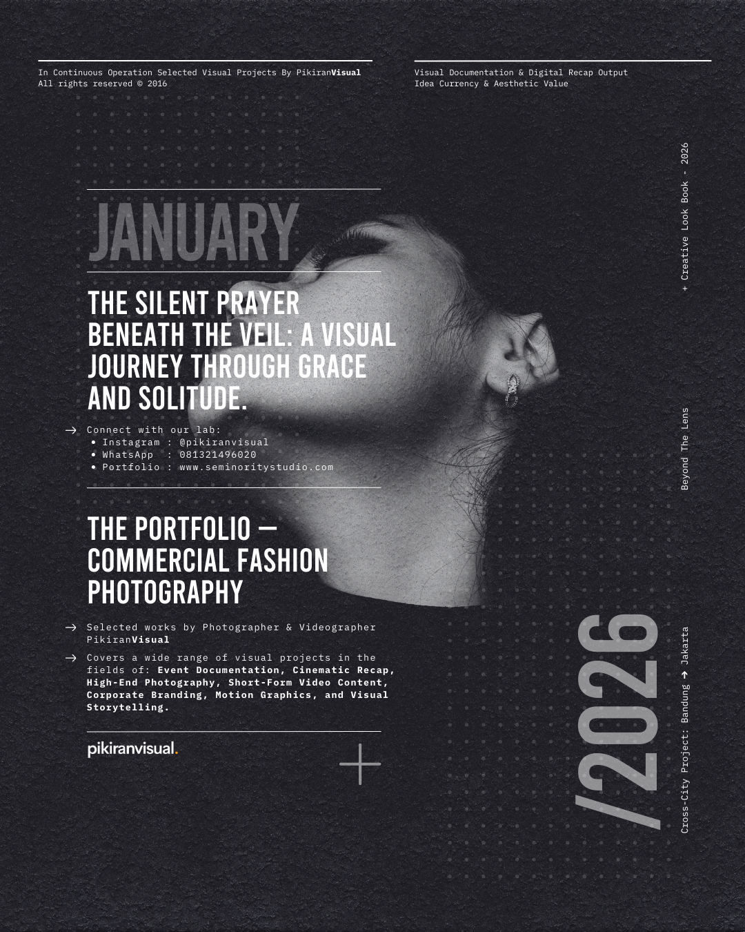 TECHNICAL EXECUTION Kami kembali menggunakan sensor Fujifilm yang dipadukan dengan lensa Nikkor 50mm f/1.8 untuk mendapatkan tekstur grain yang artistik dan transisi highlight-to-shadow yang lembut. Dengan memanfaatkan pencahayaan alami yang redup (ambient light), kami sengaja mempertahankan detail pada helai kerudung hitam untuk menciptakan dimensi, sembari memberikan fokus tajam pada mata subjek sebagai jendela utama narasi.